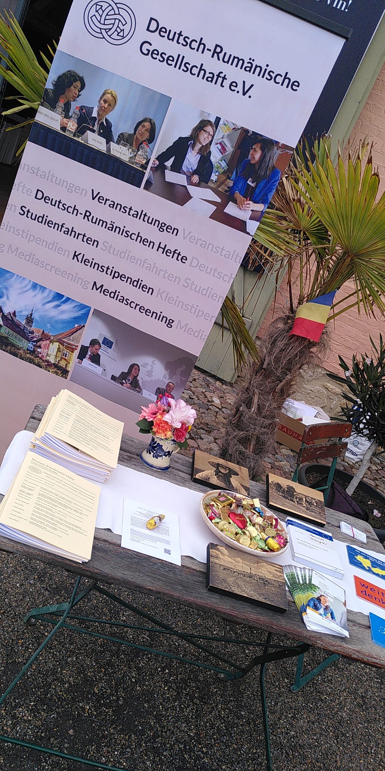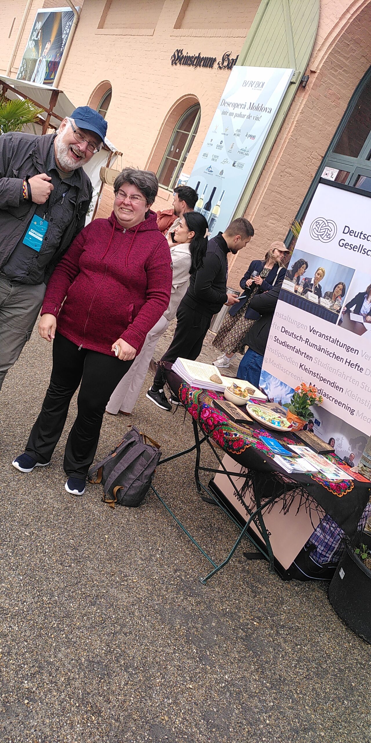 Wir waren mit einem kleinen Stand vertreten und beantworteten neugierige Fragen zu den Aktivitäten der DRG. Denn zunächst wunderten sich viele, was die Deutsch-Rumänische Gesellschaft mit der Republik Moldau zu tun haben könnte. Das bot viel Stoff für so manche kleine Aufklärung zur gemeinsamen Geschichte, Sprache und Kultur der beiden Länder. Neben den Deutsch-Rumänischen Heften (Link) verteilten wir auch rumänischsprachige Info-Materialien an die moldauischen Festival-BesucherInnen. Christof Kaiser, Raluca Fritzsch, Gerrit Kriete-Vogel und Janka Vogel waren für die DRG im Einsatz.