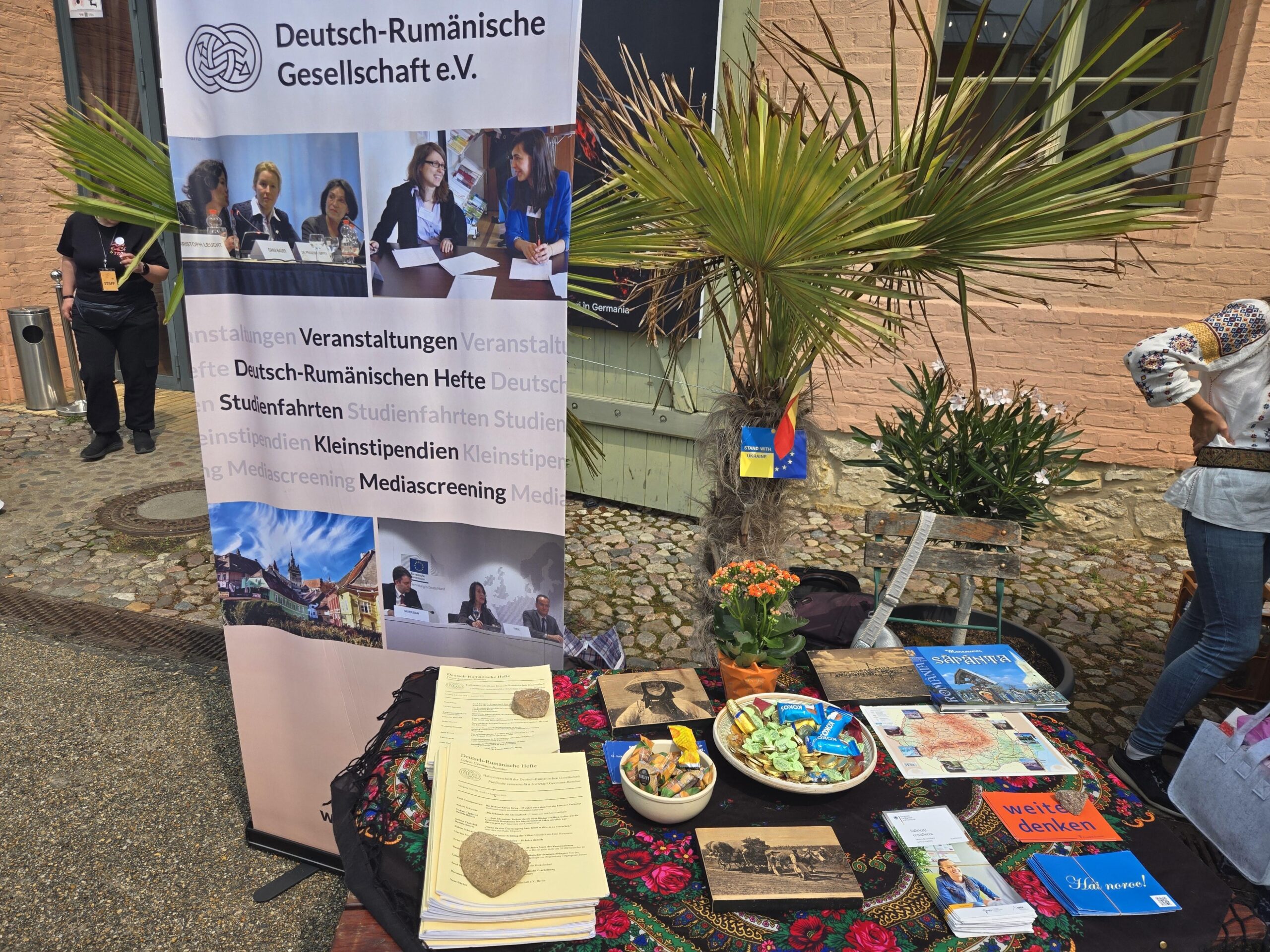 Herzlichen Dank für das anregende Gespräch auf dem Festival Dor Calator, für die interessanten Hefte und fürs schöne Sapanta-Buch! Ich habe mich gefreut, Sie kennenzulernen und über die Deutsch-Rumänische Gesellschaft zu erfahren. Online habe ich mehr über Ihre eigene spannende Arbeit gelesen und würde mich sehr gerne ausführlicher mit Ihnen austauschen (Besucherin an unserem Stand)