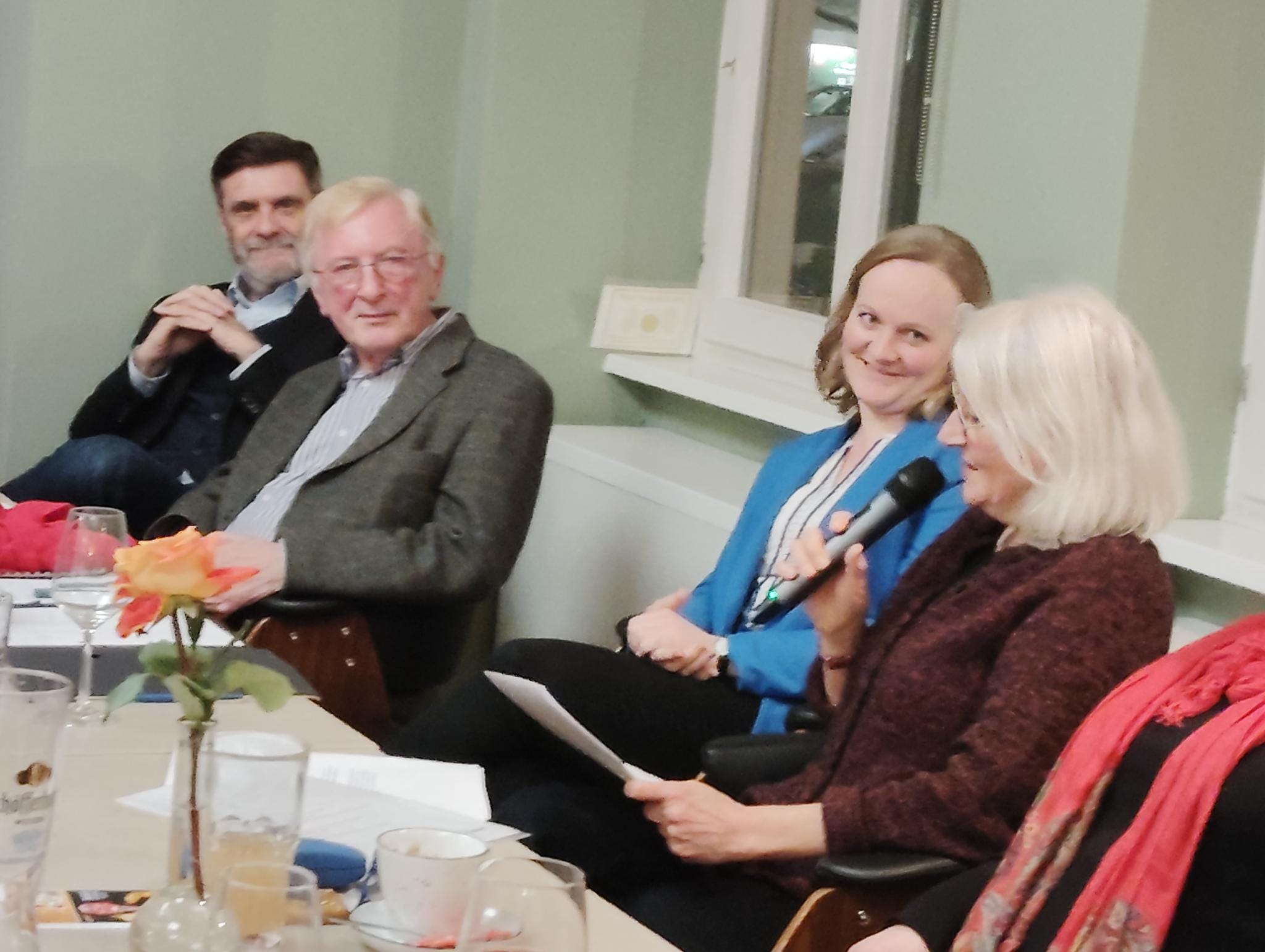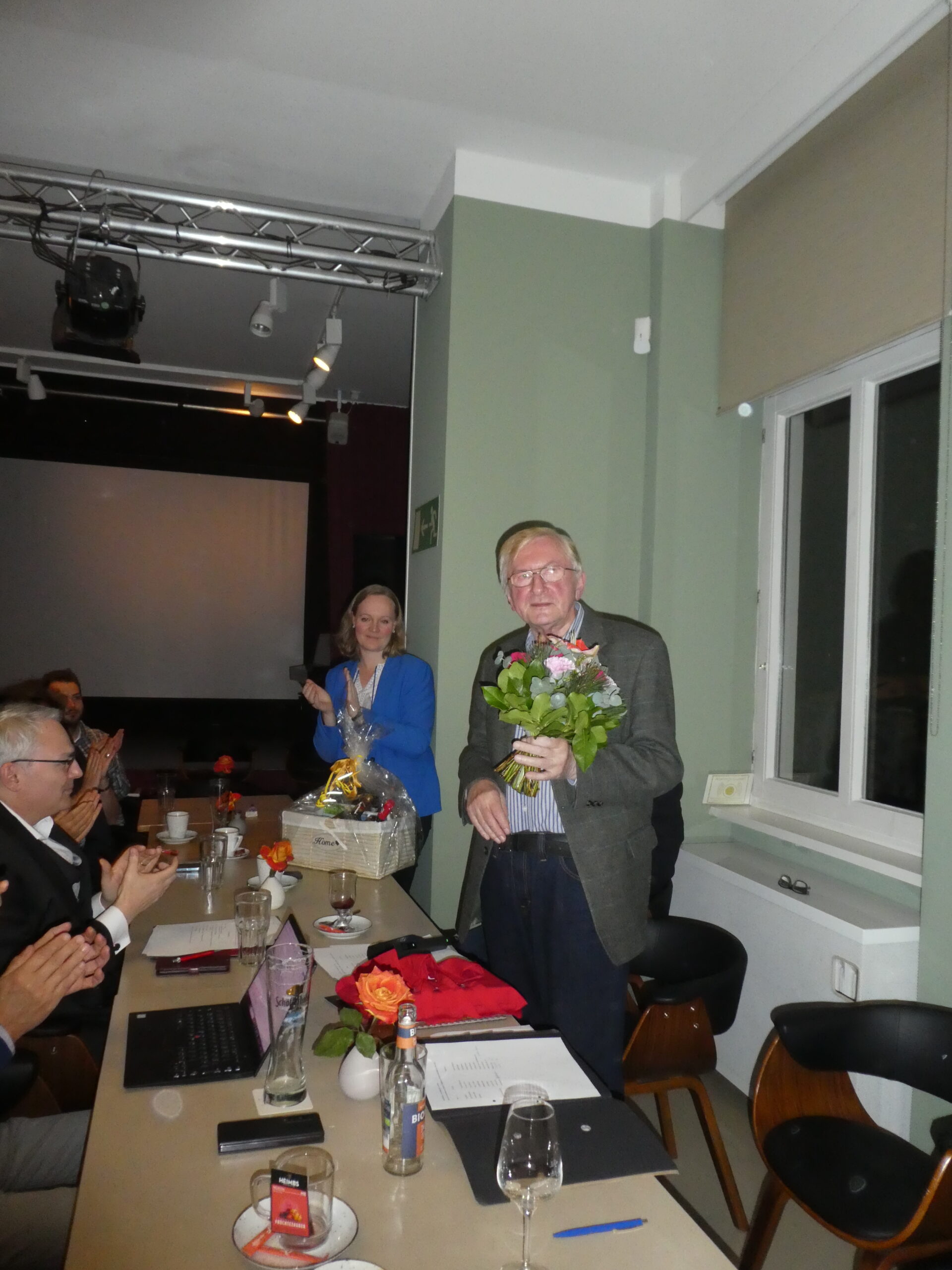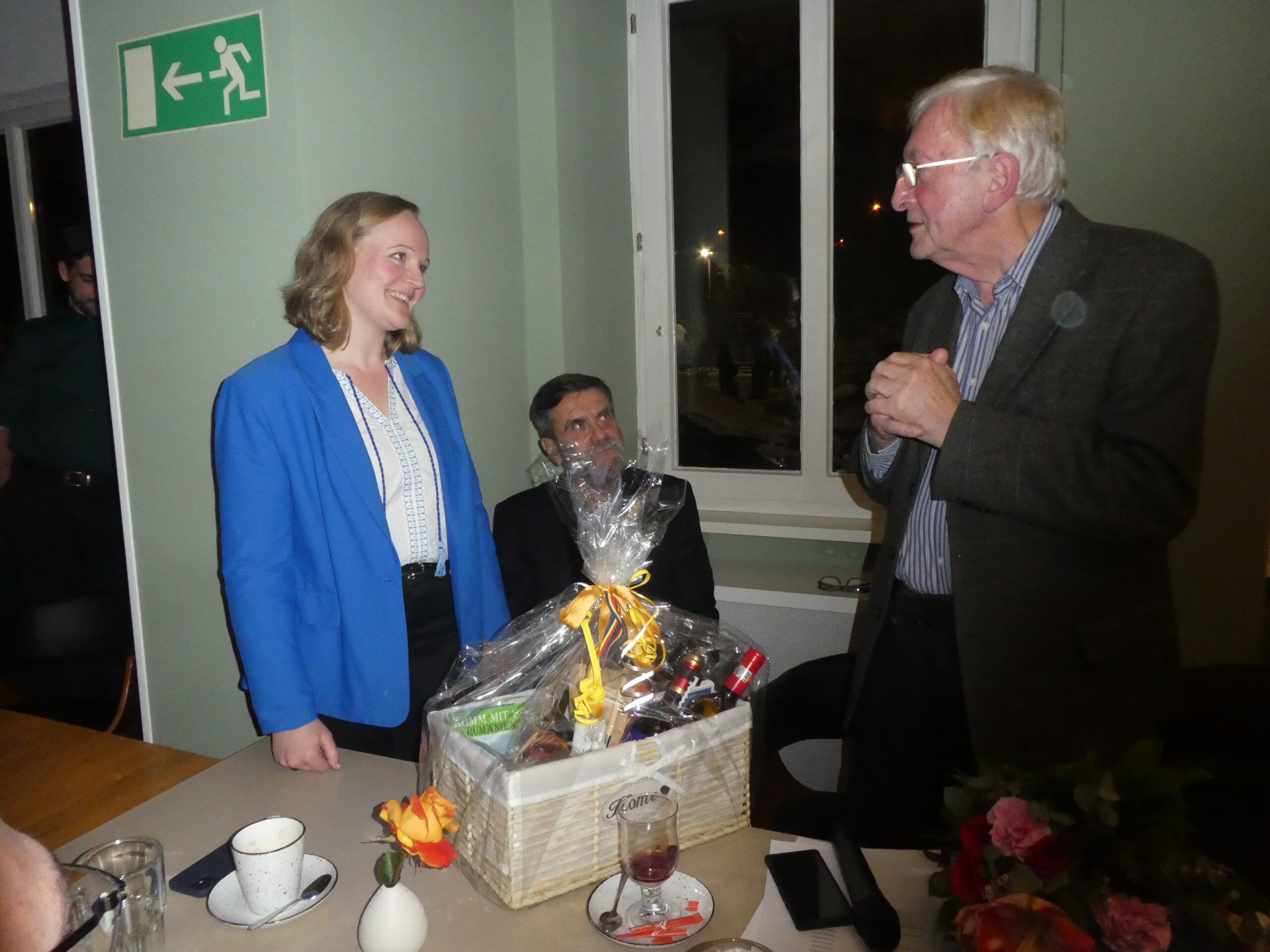Danach folgte eine kleine Ansprache unseres scheidenden Präsidenten, die keine Abschiedsrede werden sollte, aber doch so verstanden werden kann. Gerhard Köpernik verabschiedete sich nach 18 Jahren Präsidentschaft aus dem Vorstand. Mit Laudatio, Blumen und rumänisch-moldauischem Präsentkorb verabschiedeten die Vorstandsmitglieder in den Ehrenamtsruhestand. Hermine Untch stellte sich nicht erneut als Vizepräsidentin zur Verfügung; wir dankten mit Blumen und Applaus für die vielen Jahre, in denen sie das Amt ausgefüllt hat. Auch unseren Rechnungsprüfer, Wilfried Lohre, verabschiedeten wir nach langjähriger Tätigkeit aus dem Vorstand und dankten herzlich für seinen Einsatz. Mona Vintilă schied ebenfalls aus dem Vorstand aus; unseren Dank konnten wir leider nicht persönlich zum Ausdruck bringen.