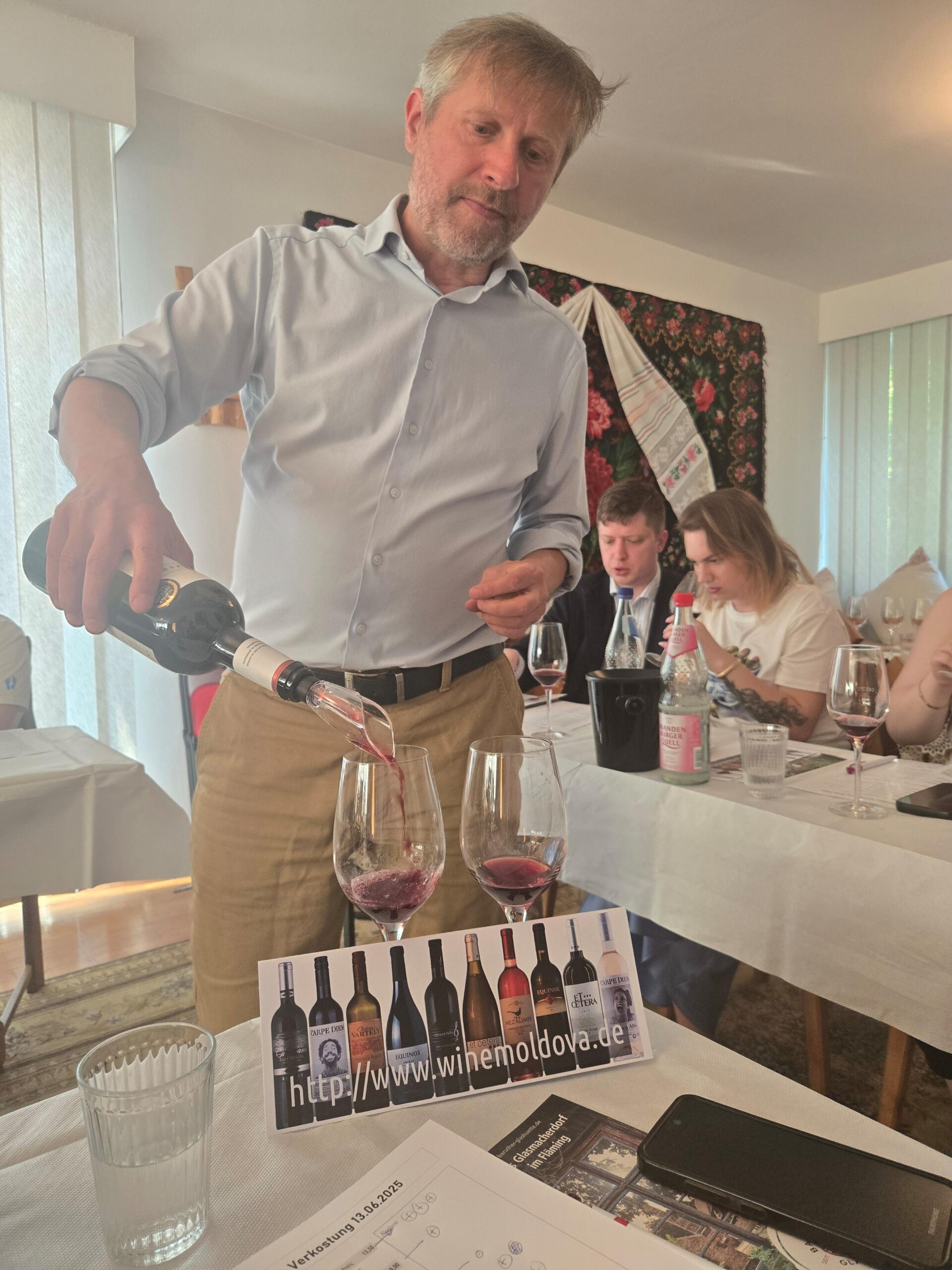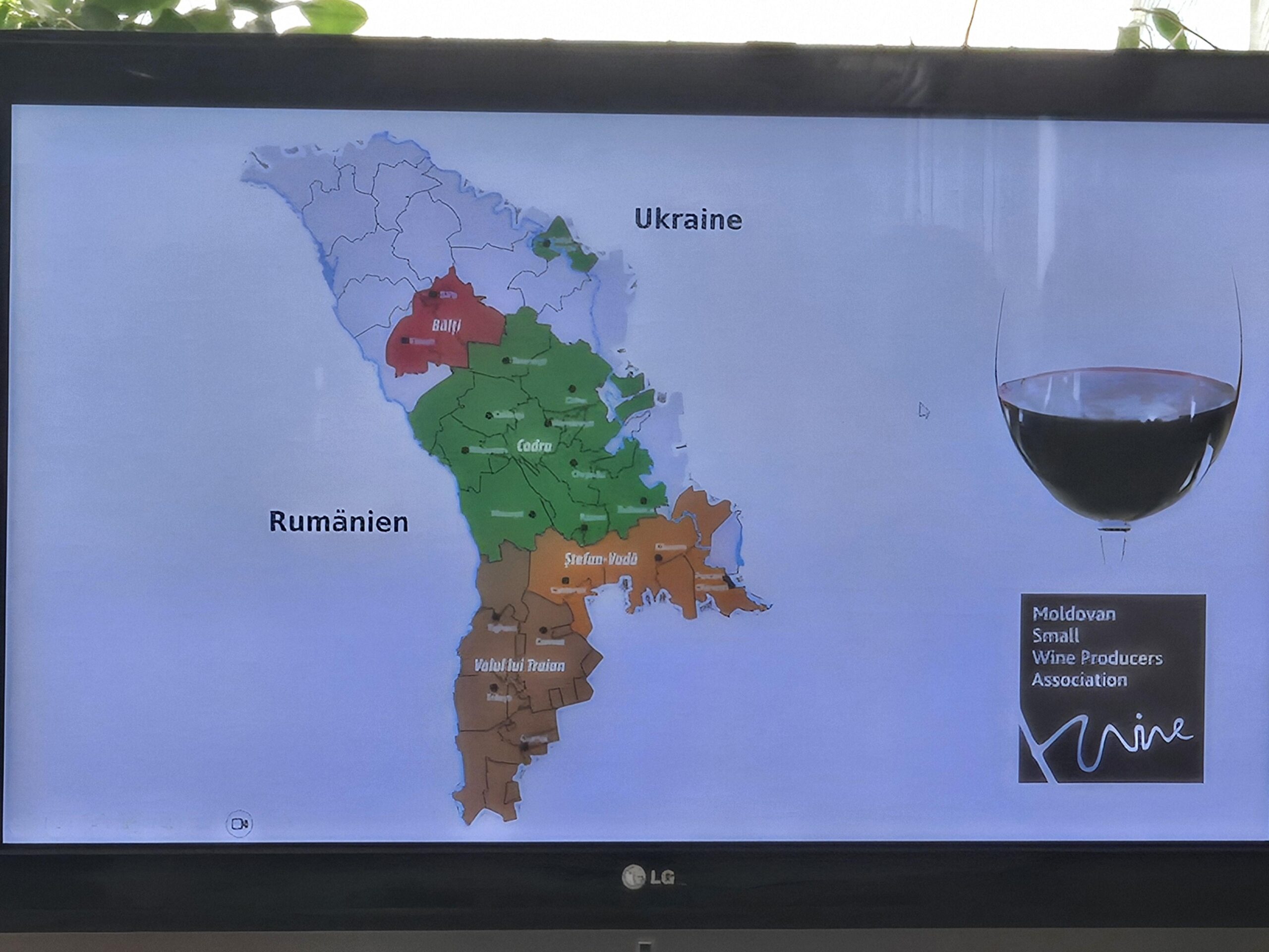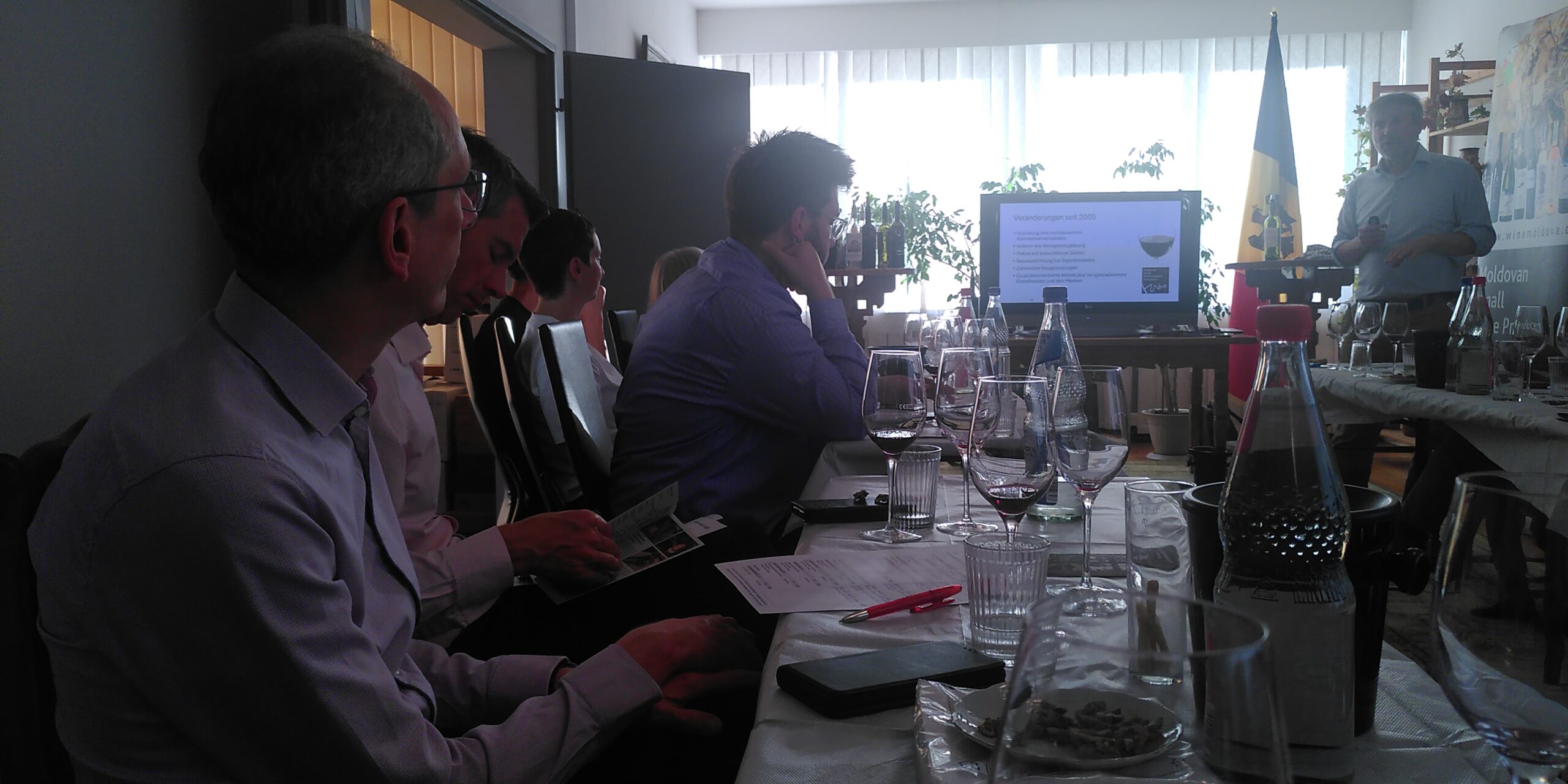Obwohl die Republik Moldau über mehr Rebfläche pro Einwohner als jedes andere Land verfügt, ist moldauischer Wein in Deutschland immer noch wenig bekannt. Im Rahmen dieser Veranstaltung haben über 20 BesucherInnen theoretisch und praktisch mehr über die Geschichte des Weinbaus in der Republik Moldau erfahren. Insgesamt wurden neben vier weißen, einem Rosé- und fünf Rotweinen auch zwei (helle) Schaumweine und ein Eiswein als Dessertwein verkostet. Auch Bio-Weine waren dabei.