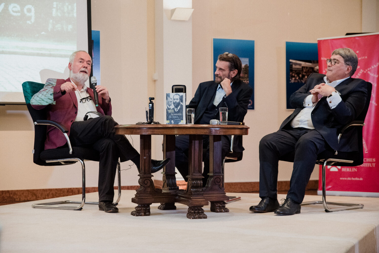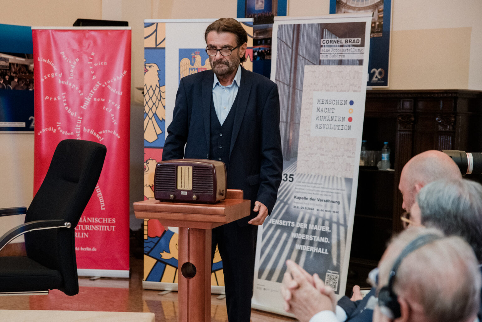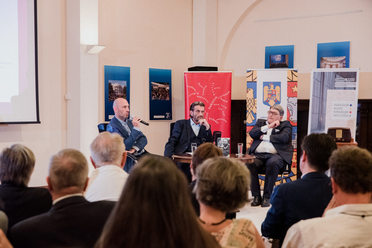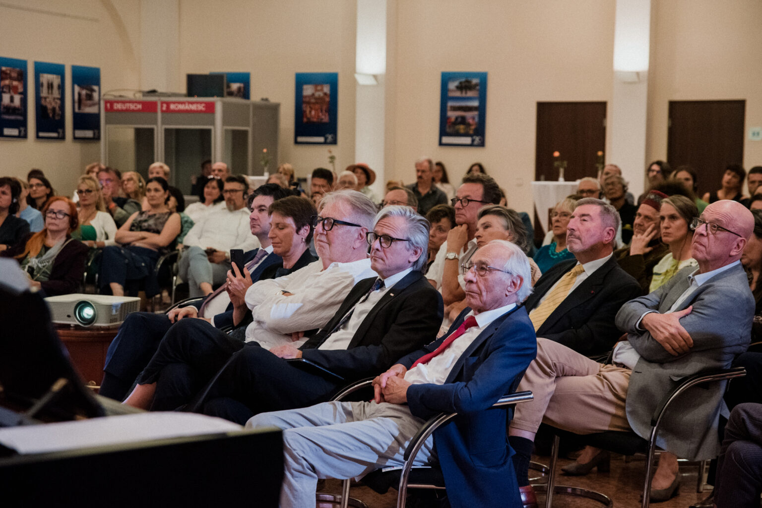 Auch der Präsident des Rumänischen Kulturinstituts, Liviu Jicman, war am 02.09.24 bei der multimedialen Podiumsdiskussion in der Rumänischen Botschaft als Ehrengast dabei. Im Publikum (wir hatten 150 Gäste, der Saal war voll) durfte ich auch zwei ehemalige Botschafter Deutschlands in Rumänien, Werner Lauk und Cord Meier-Klodt, begrüßen.