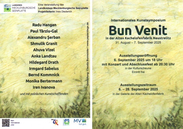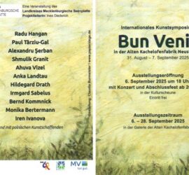 Der Landkreis Mecklenburgische Seenplatte ist Partnerlandkreis von Bistrița-Năsăud. Unter dem Titel « Bun Venit » wird es nun schon zum dritten Mal ein Künstlersymposium in Neustrelitz geben, an dem Künstler aus der rumänischen Partnerregion teilnehmen werden. Vom 31.August bis zum 7.September treffen sich deutsche, rumänische und israelische Künstler zu einer […]